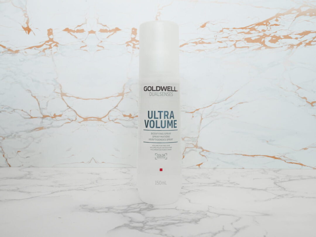 Het eerste product is de Goldwell dualsenses ultra volume bodifying spray. Dit is een versterkende en voedende leave-in spray, die zowel het haar ontward als volume geeft. Je gebruikt her product direct op handdoekdroog haar.