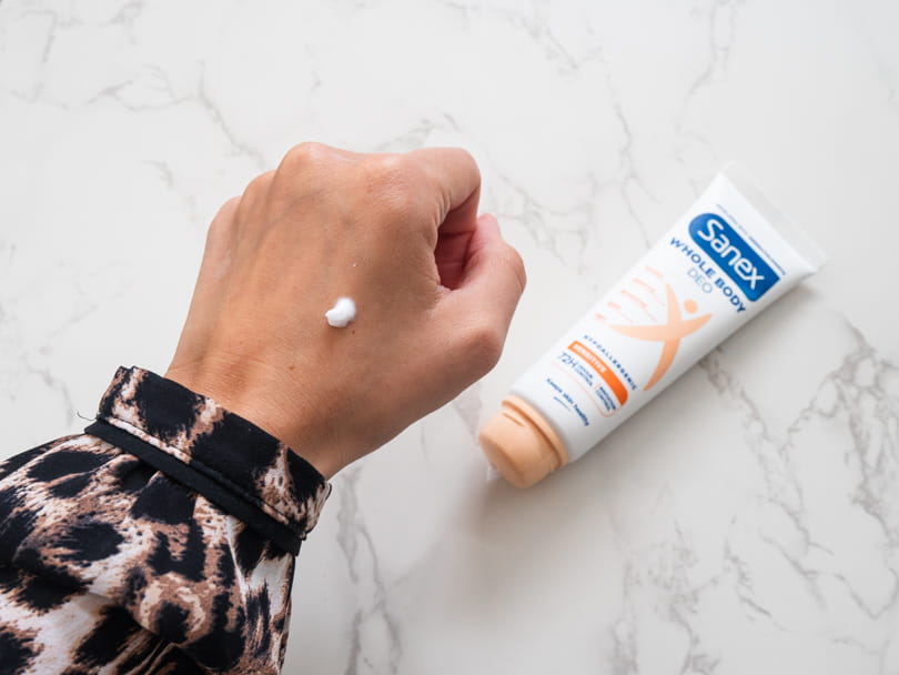 De Sanex whole body deo lijn bestaat uit twee verschillende producten: een deodorant spray en een cream. De sprays kennen we natuurlijk allemaal, maar de cream lijkt enigszins op een roller, alleen is het echt meer een crème die je zowel op je huid kunt rollen als zelf kunt smeren. De deo spray is geschikt voor handen, oksels, lichaam en voeten, waar de cream ook geschikt is voor de intiemere zones.
